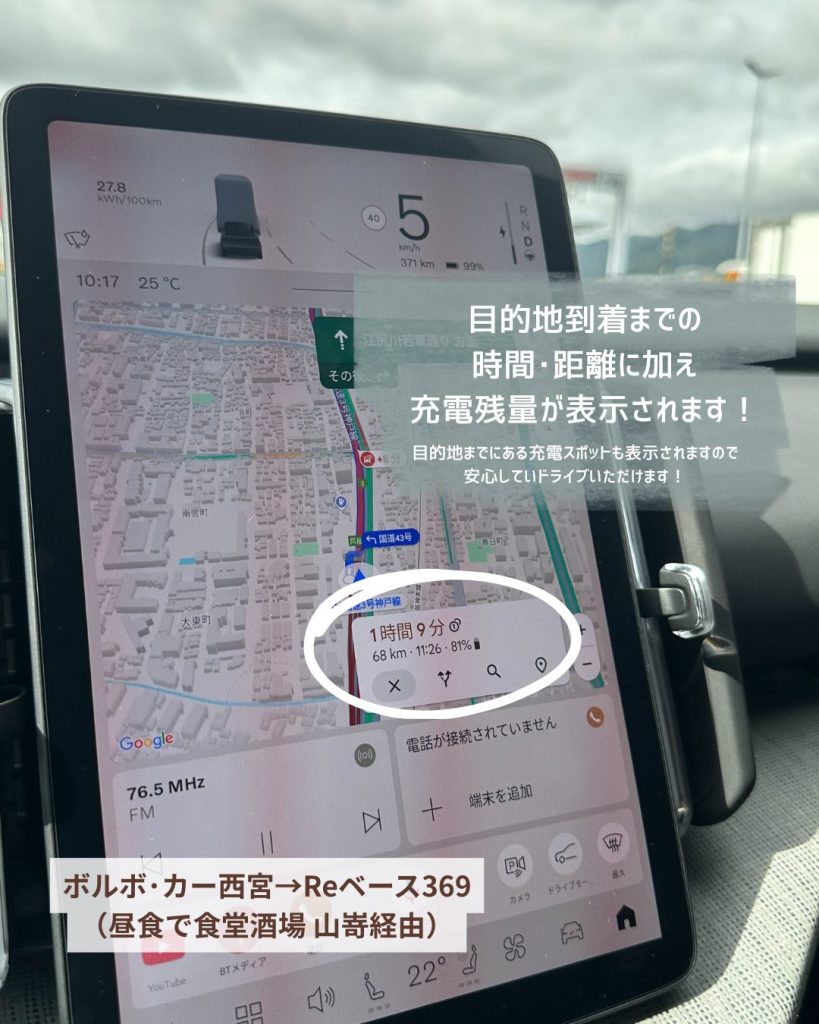 ナビ上で近くの充電スポットが表示されますので